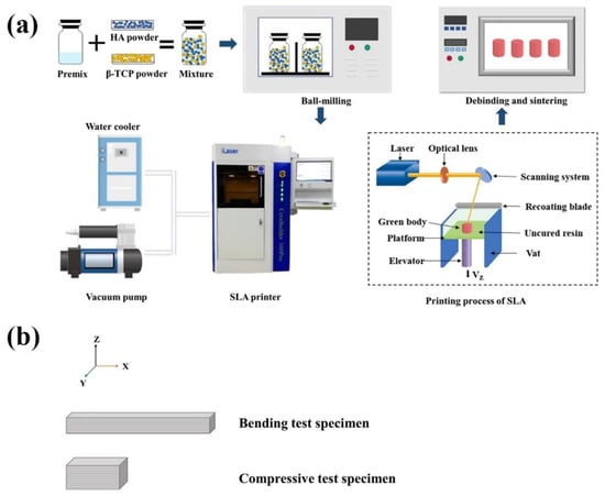 - Dong, D.; Su, H.; Li, X.; Fan, G.; Zhao, D.; Shen, Z.; Liu, Y.; Guo, Y.; Yang, C.; Liu, L.; et al. Microstructures and Mechanical Properties of Biphasic Calcium Phosphate Bioceramics Fabricated by SLA 3D Printing. J. Manuf. Process. 2022, 81, 433–443. [Google Scholar] [CrossRef]
