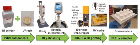 Liquid Crystal Display (LCD)-SLA 3D printing of barium titanate (BaTiO3)-UV Resin) samples [39].
