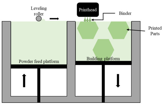- Gibson, I.; Rosen, D.; Stucker, B.; Khorasani, M. Binder Jetting. In Additive Manufacturing Technologies; Springer International Publishing: Cham, Switzerland, 2021; pp. 237–252. ISBN 978-3-030-56126-0. [Google Scholar]