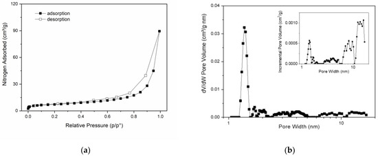 Nitrogen adsorption/desorption isotherm (a) and NLDFT pore size distribution (b) of clinoptilolite.