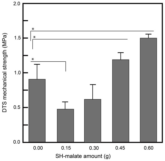 DTS values of the set blocks with different SH-malate amounts. *: p < 0.05.