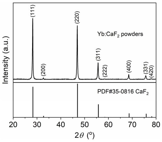 - Wei, J.B.; Toci, G.; Pirri, A.; Patrizi, B.; Feng, Y.G.; Vannini, M.; Li, J. Fabrication and property of Yb:CaF2 laser ceramics from co-precipitated nanopowders. J. Inorg. Mater. 2019, 34, 1341–1348. [Google Scholar] [CrossRef]