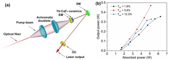 - Li, W.W.; Huang, H.J.; Mei, B.C.; Wang, C.; Liu, J.; Wang, S.Z.; Jiang, D.P.; Su, L.B. Fabrication, microstructure and laser performance of Yb3+ doped CaF2-YF3 transparent ceramics. Ceram. Int. 2020, 46, 19530–19536. [Google Scholar] [CrossRef]