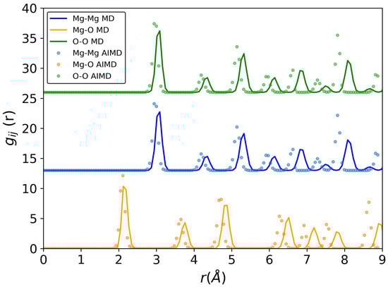 - Karki, B.B.; Bhattarai, D.; Stixrude, L. First-principles calculations of the structural, dynamical, and electronic properties of liquid MgO. Phys. Rev. B 2006, 73, 174208. [Google Scholar] [CrossRef]