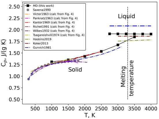 - Alvares, C.; Deffrennes, G.; Pisch, A.; Jakse, N. Thermodynamics and structural properties of CaO: A molecular dynamics simulation study. J. Chem. Phys. 2020, 152, 084503. [Google Scholar] [CrossRef]