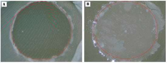 Provides a visual representation of the fracture pattern for DCA + PSM: (A), adhesive pattern; (B), mixed pattern.