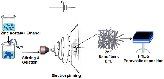 Electrospinning process and PSC fabrication for the ZnO nanofibers.