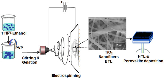Electrospinning process and PSC fabrication for the TiO2 nanofibers.
