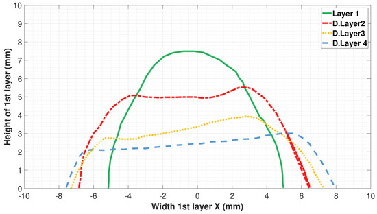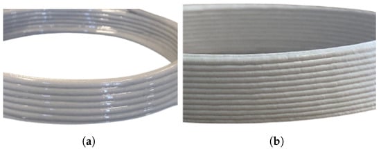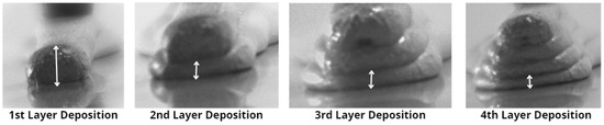 The order of values among the three binders, consistent with viscosity evaluation, highlights B-M1200s as distinctive with a of 94.1 Pa. This elevated storage modulus indicates heightened resistance to elastic deformation, underscoring M1200s’ pivotal role in maintaining the material’s solid viscoelastic structure. The yield stress, indicative of the point where the internal structure’s network starts to break down, offers enhanced control at the onset of extrusion, preventing unintended material flow prior to intentional initiation. For B-M88, the determined yield stress was 8.1%, which was notably higher compared to B-MX at 1% and B-M1200s at 0.1%. This indicates that B-M88 necessitates a greater force during extrusion to initiate material flow. A high yield stress is not only associated with the material’s ability to maintain its shape under external constraints but is crucial for ensuring precision and fidelity during the extrusion process, especially when printing successive layers. This property becomes essential in guaranteeing the deposited shape’s accuracy. Researchers have linked yield stress to the material’s capacity to maintain a desired structure under external forces, such as those induced by deposited geopolymer-based composite in subsequent layers or gravitational forces [51]. A material with a high yield stress exhibits a greater capacity to retain the desired shape after deposition.