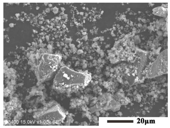 As shown in Figure 4, the size of large particles in the powder mixture after ball milling was around 20 μm, while Ti particles with a size close to 50 μm had disappeared. After ball milling, the diamond particles were preserved well because of their great hardness, and the Ti particles were effectively refined, which was considered to be beneficial to the process of reaction sintering.