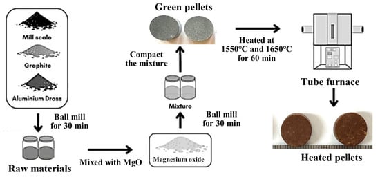 - Eissa, M.; Ahmed, A.; El-Fawkhry, M. Conversion of mill scale waste into valuable products via carbothermic reduction. J. Metall. 2015, 2015, 926028. [Google Scholar] [CrossRef][Green Version]