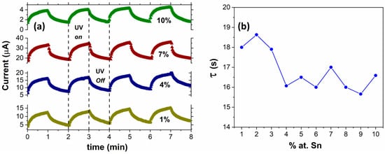 - Kumar, M.; Bhatt, V.; Abhyankar, A.C.; Kim, J.; Kumar, A.; Yun, J.-H. Modulation of structural properties of Sn doped ZnO for UV photoconductors. Sens. Actuators A 2018, 270, 118–126. [Google Scholar] [CrossRef]
