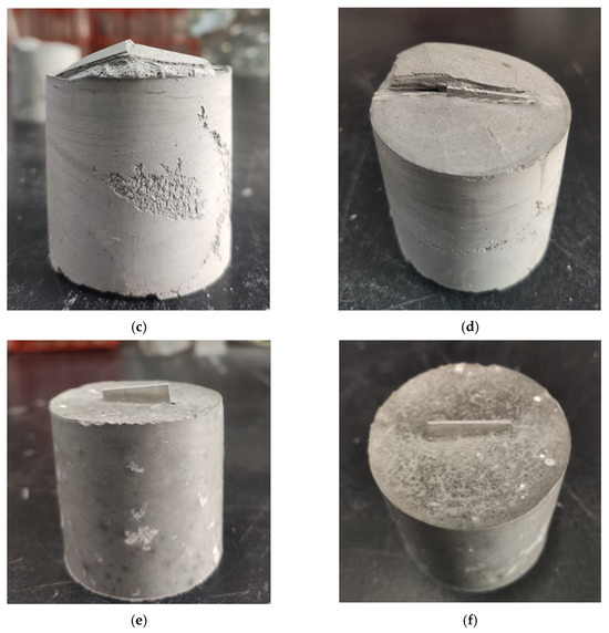 Appearance of the top of the samples of OPC pastes with Al plates at 3 days of hydration: (a,b): PC-P0; (c,d): PC-P3; and (e,f): PC-P6 samples.