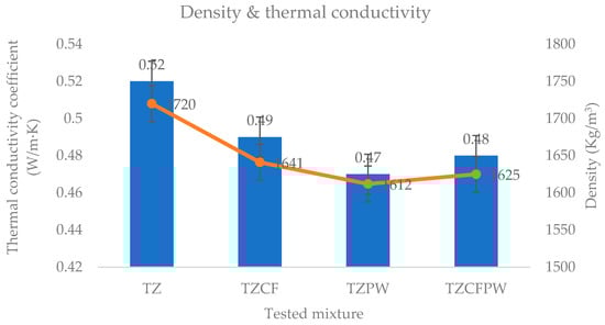 The results for the baseline clay (TZ) and modified clay mixtures (TZCF, TZPW, and TZCFPW) are summarized in Table 5 and analyzed based on key physical and thermal properties.