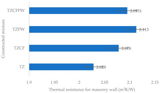 Thermal resistance (Rwall) of a wall constructed with bricks from the tested mixtures.