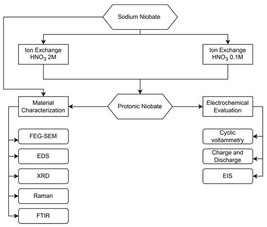 Figure 1 presents a flowchart of the experimental methods and the characterizations carried out for the niobate nanowire samples obtained in this work.