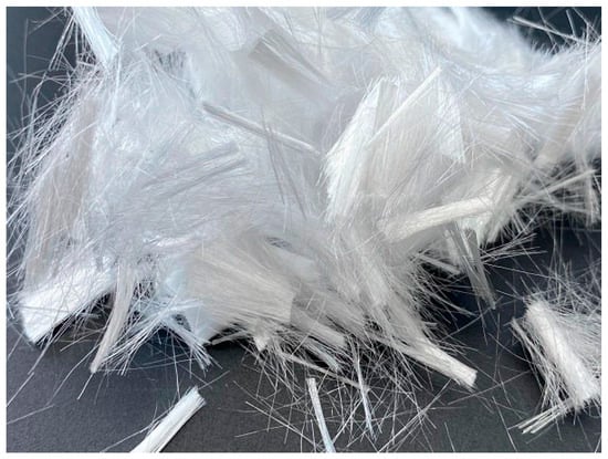 The materials used are itemized below. Fly ash (FA) was used as an aluminosilicate material in place of cement. The fly ash (FA) utilized complies with the ASTM C618 standard [43] and is classified as low-calcium (Class F). It possesses a specific gravity of 2.23 and a specific surface area of 3300 cm2/g. The chemical composition of the FA is detailed in Table 1. FA, sourced from Sika, is a by-product with minimal calcium content (below 10%). An alkaline activator solution, comprising 14M NaOH and Na2SiO3 solutions, was employed to initiate the polymerization process. These solutions were used to chemically activate the FA. The monofilament polypropylene fibers consist of ultra-fine individual strands, sourced from Sika, with a diameter of 18 microns and a length of 18 mm. These fibers were selected to meet maximum aggregate size limitations and surface finish criteria, as illustrated in Figure 1. The fibers are coated with a surfactant to improve initial dispersion and bonding, and they conform to ASTM -1116-00 [44].