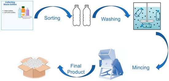 Preparation of fine lightweight water bottle (F-PET) by mincing.