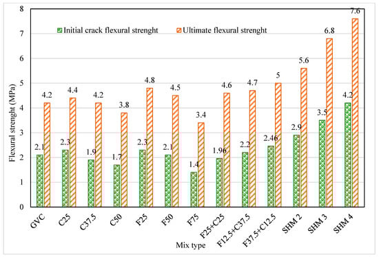 Initial cracking and ultimate flexural strength of SHG mixes incorporating SHM.