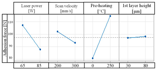 Main factor diagram for mean adhesion values of PBF-LB/M-manufactured Cu on AlN.