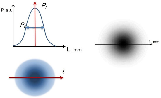 In the studies described above, the power density was defined as the average energy flux, Pc, calculated as the ratio of the total beam power to the irradiated surface area. The actual distribution of the beam energy on the surface has a Gaussian shape (Figure 5).