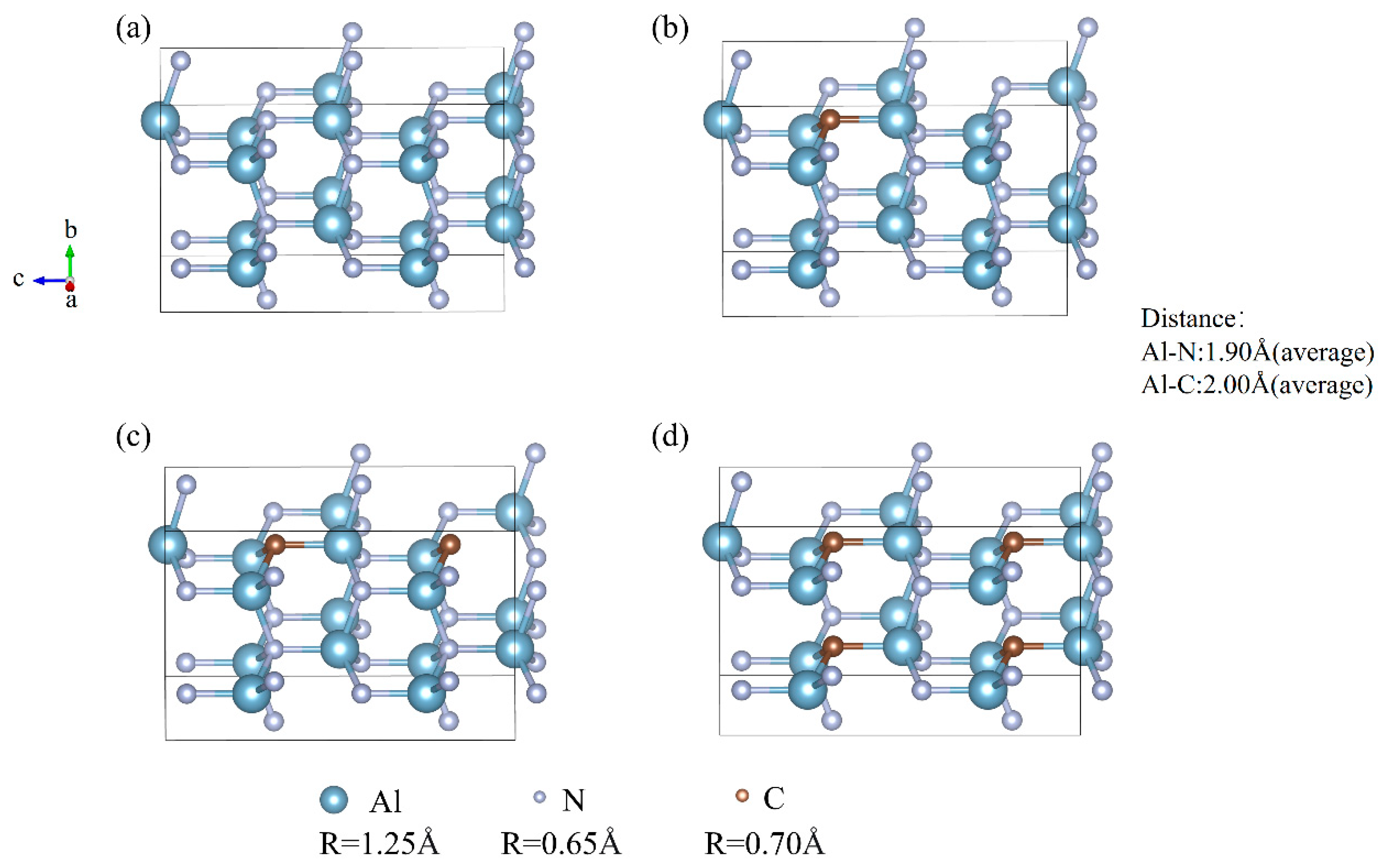 - Su, E.; Liu, J.; Li, M.; Yu, X.; Guo, S.; Zhang, L.; Zhao, X.; Lei, B. First-principles study on electronic structure and optical properties of C and Na doped AlN. J. At. Mol. Phys. 2024, 41, 24–30. [Google Scholar] [CrossRef]