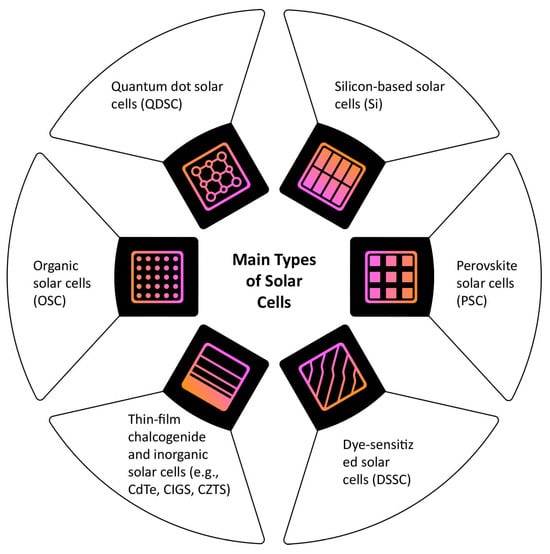 As the solar energy sector continues to grow and evolve, there has been a significant push to diversify the range of materials used in solar cells [,,,,,]. Researchers are exploring novel materials that may offer higher efficiency, lower production costs, or better performance under specific environmental conditions. This expansion has led to the investigation of organic photovoltaic materials [,], perovskites [,], and quantum dots [,], among others.