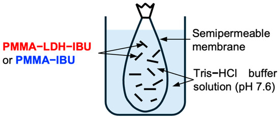 Schematic diagram of the experimental setup for the IBU release test of UPMMA–LDH–IBU and PMMA–IBU.