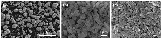 Microstructure of (a) NiO powders, (b) Li2O powders, and (c) the milled powders.