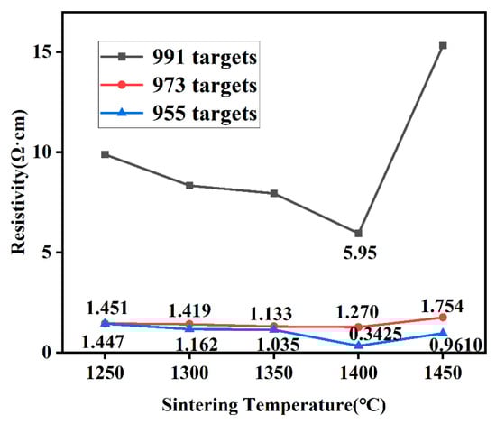 The resistivity of the 991, 973, and 955 targets sintered at different temperatures.