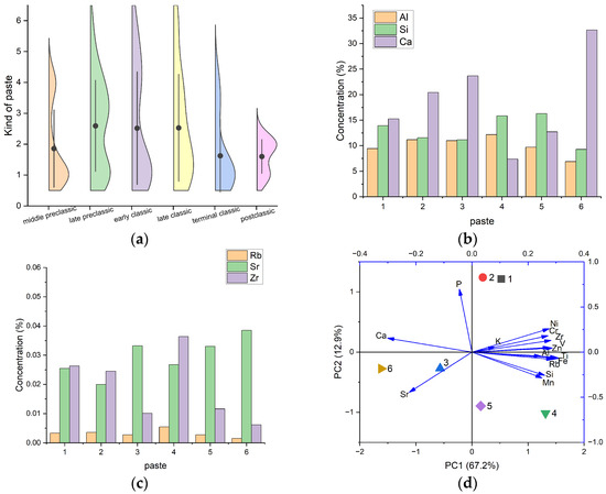 3.2.3. Analysis of Archaeological Paste Varieties