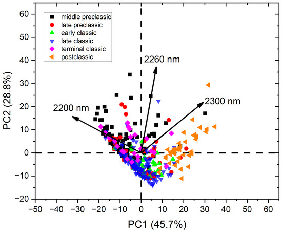 - Centeno, S.A.; Williams, V.I.; Little, N.C.; Speakman, R.J. Characterization of Surface Decorations in Prehispanic Archaeological Ceramics by Raman Spectroscopy, FTIR, XRD and XRF. Vib. Spectrosc. 2012, 58, 119–124. [Google Scholar] [CrossRef]