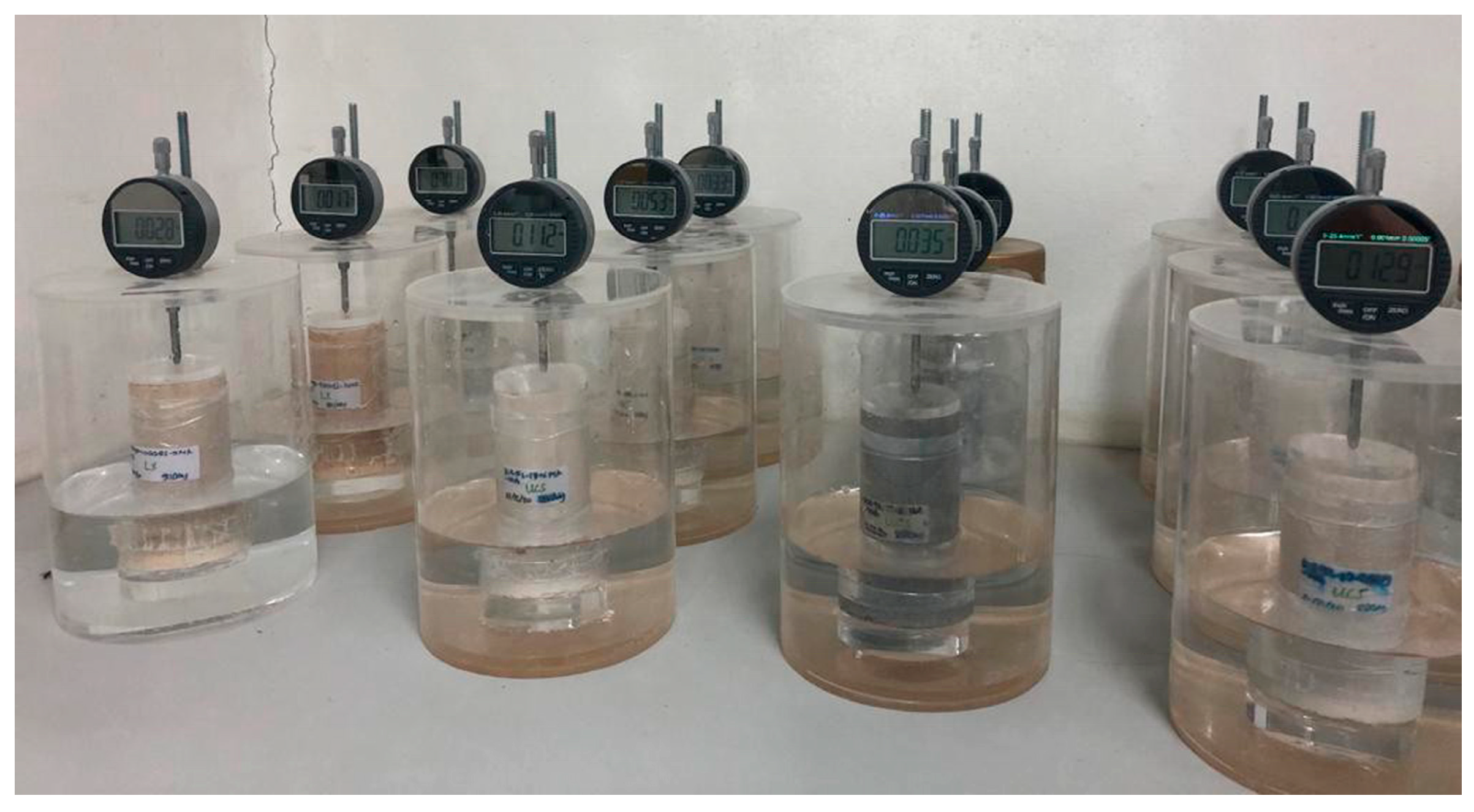 - Li, H.; Radwan, A.E.; Yin, S.; Al-Gharbawi, A.S.A.; Najemalden, A.M.; Fattah, M.Y. Expansive Soil Stabilization with Lime, Cement, and Silica Fume. Appl. Sci. 2023, 13, 436. [Google Scholar] [CrossRef]
