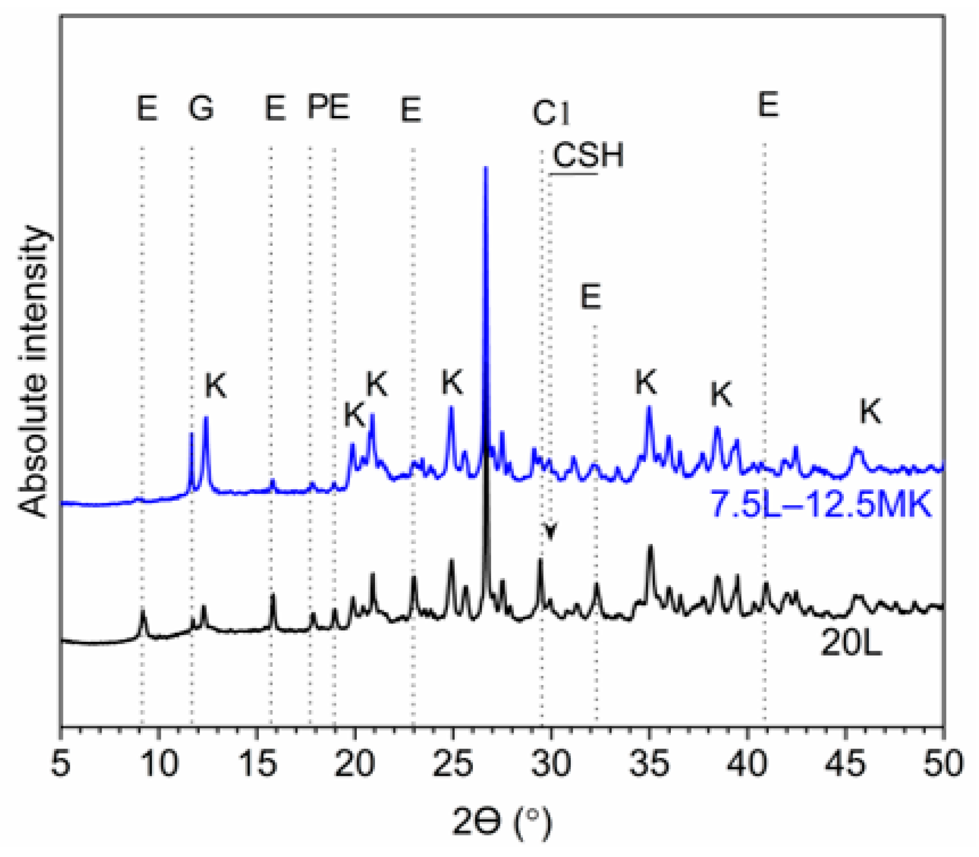 - Hassannezhad, K.; Akyol, Y.; Dursun, M.C.; Ow-Yang, C.W.; Gulgun, M.A. Effect of Metakaolin and Lime on Strength Development of Blended Cement Paste. Constr. Mater. 2022, 2, 297–313. [Google Scholar] [CrossRef]