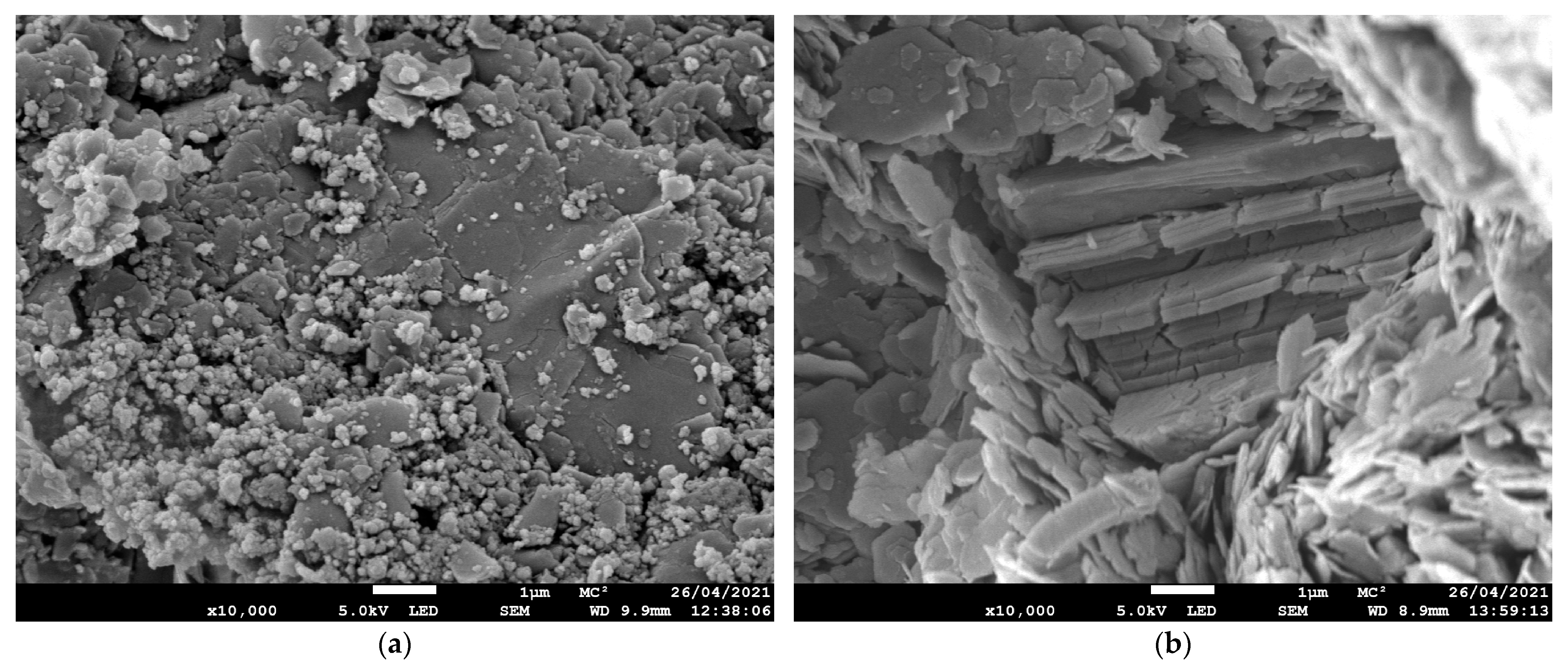 - Konan, K.L.; Peyratout, C.; Smith, A.; Bonnet, J.P.; Rossignol, S.; Oyetola, S. Comparison of Surface Properties between Kaolin and Metakaolin in Concentrated Lime Solutions. J. Colloid Interface Sci. 2009, 339, 103–109. [Google Scholar] [CrossRef]
