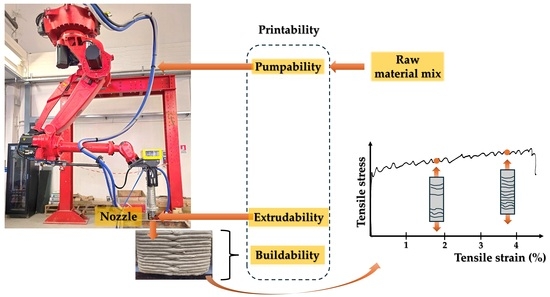 - The mix should have a low initial stiffness to be pumped and extruded, while the buildability requirement requires a stiff material able to bear its own weight;