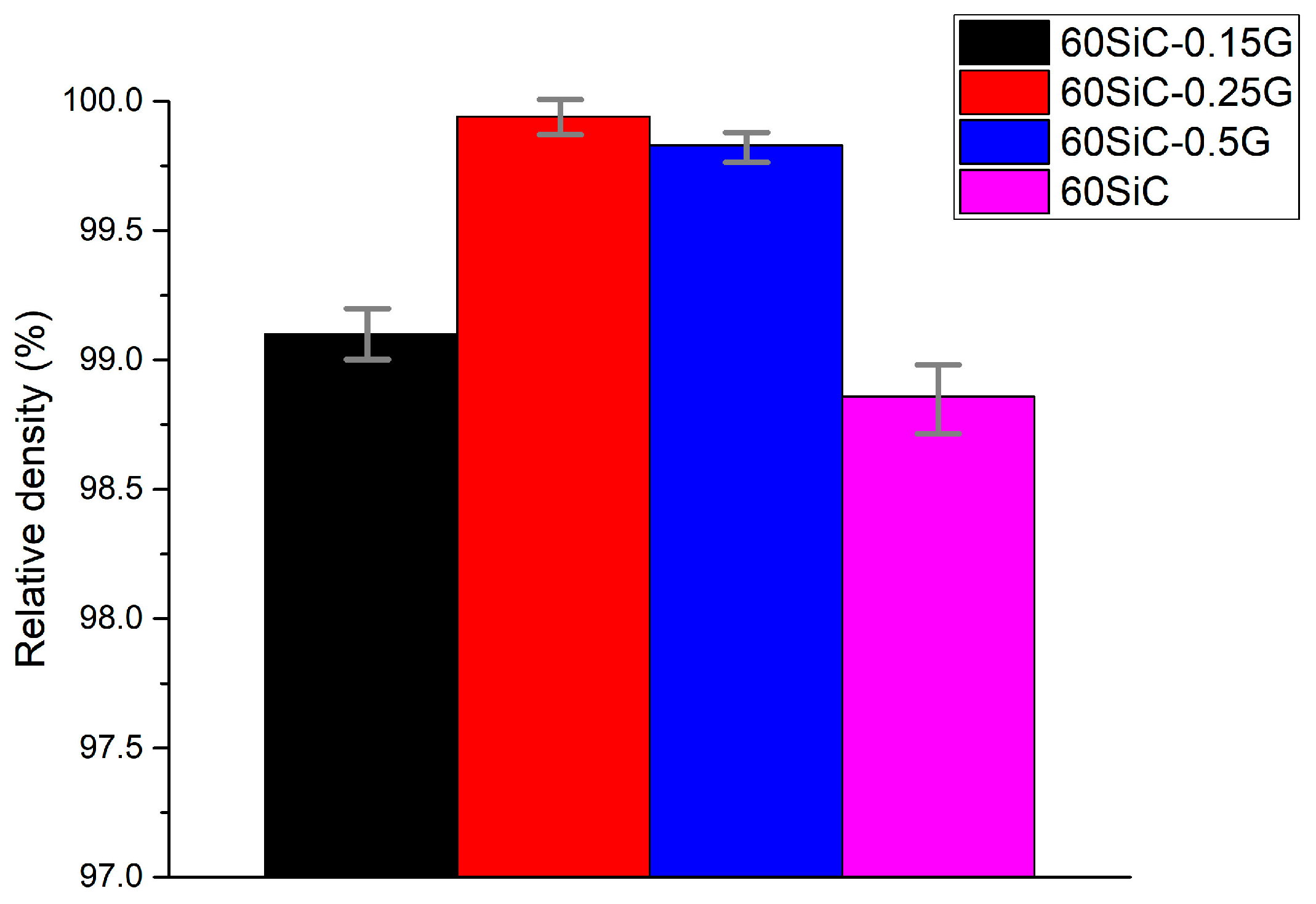 Figure 4. Diagrams of the relative density of sintered composites.