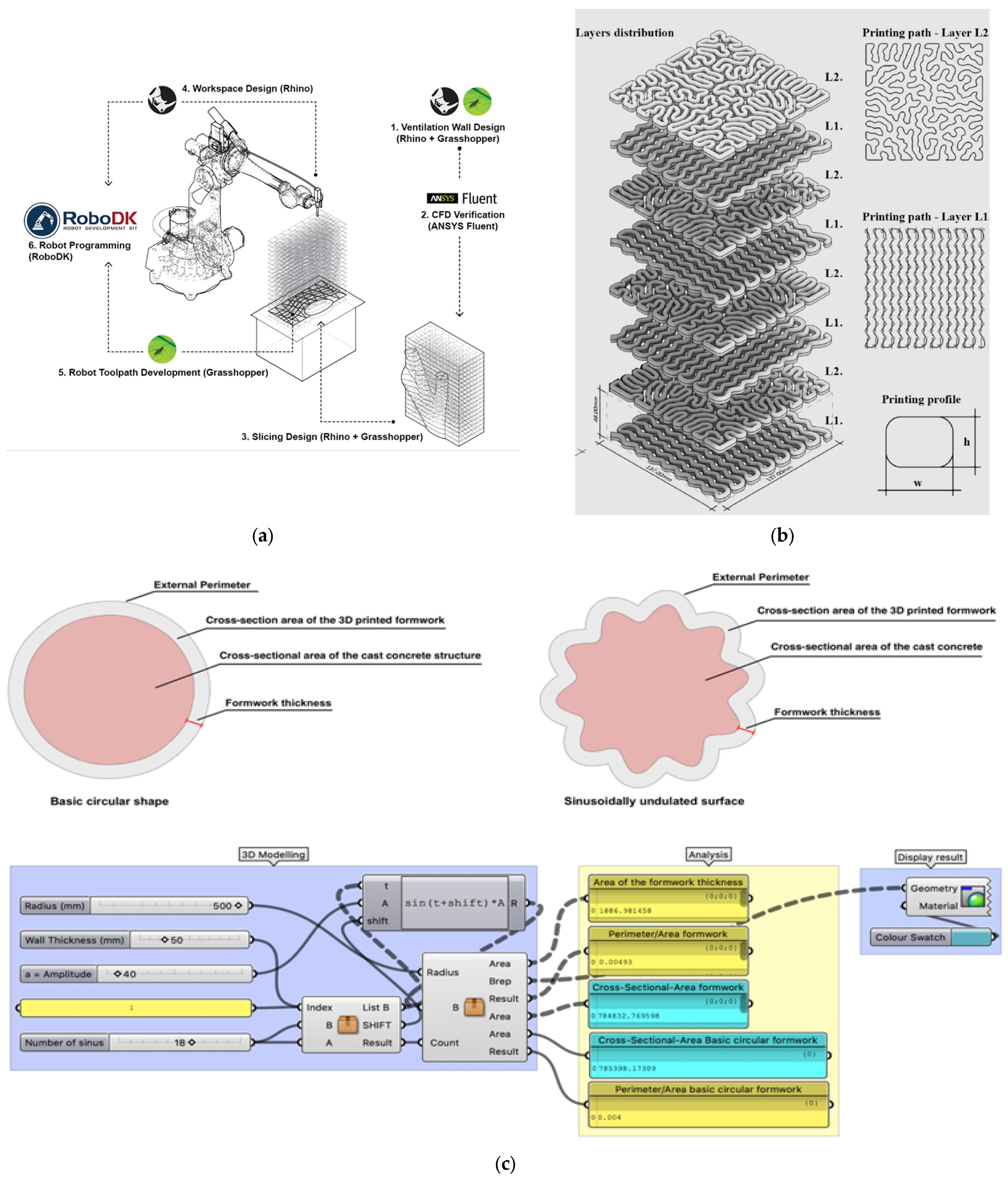 - Sovetova, M.; Kaiser Calautit, J. Thermal and Energy Efficiency in 3D-Printed Buildings: Review of Geometric Design, Materials and Printing Processes. Energy Build. 2024, 323, 114731. [Google Scholar] [CrossRef]
