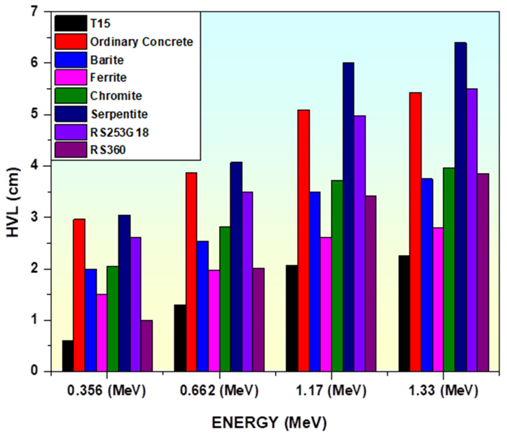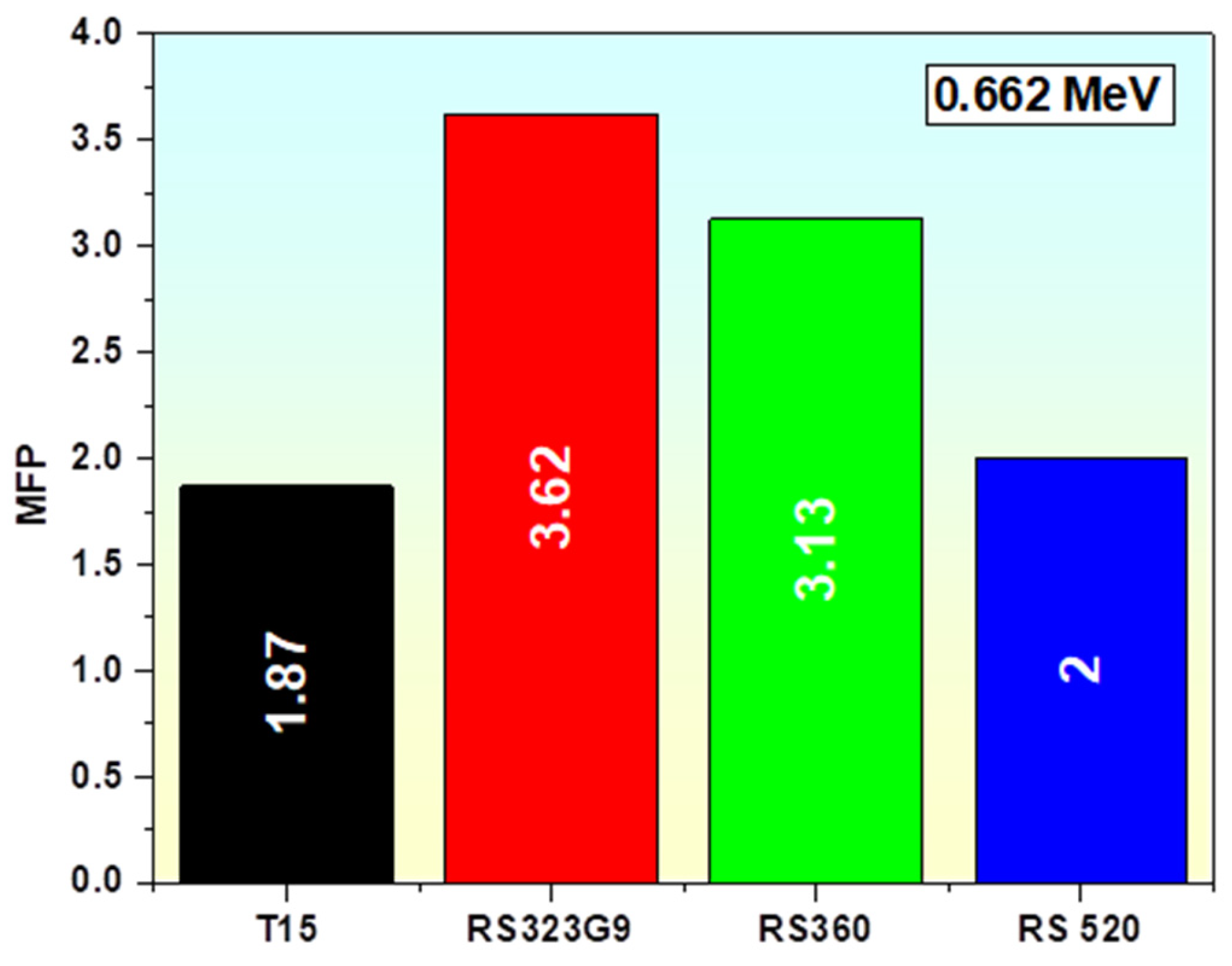 - It is discovered that the produced glasses have a lower HVL value than concretes (barite, ferrite, chromite, etc.) and a variety of commercial glasses (RS 253 G18, RS 360). The higher shielding properties of our manufactured glasses are demonstrated by the MFP value of the T15 sample when compared to the RS 360, RS 323 G9, and RS 520 commercial glasses.