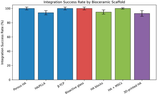 Reported complication rates were low. No scaffold-related infections or long-term foreign-body reactions were reported. Bioactive glass scaffolds demonstrated added benefit by reducing postoperative infection rates, possibly due to their intrinsic antibacterial ion release [26,27].