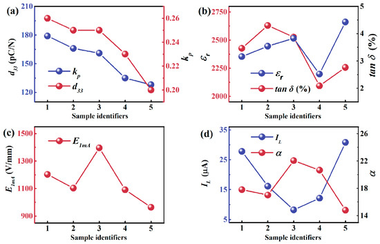 To facilitate the examination of the experimental data, Table 2 lists all the piezoelectric, piezoresistive, dielectric, ferroelectric and other experimental results of the ceramics.