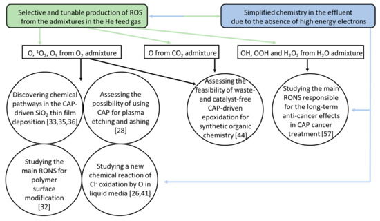 Despite the significant progress in the field of biomedical CAP, the underlying mechanisms are far from understood. It is generally assumed that the majority of the observed biomedical effects is due to the extremely high chemical reactivity of RONS. However, the main RONS (or even their nature: long- or short-lived) responsible for the medicinal effects of CAP are mostly not known [38,46].