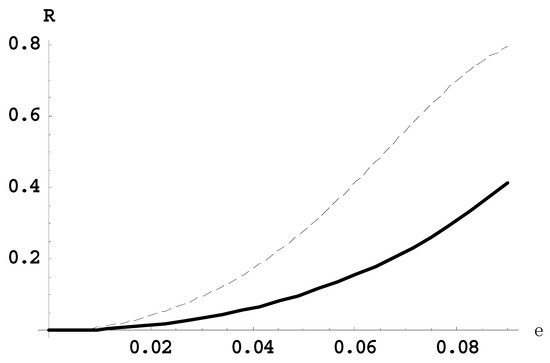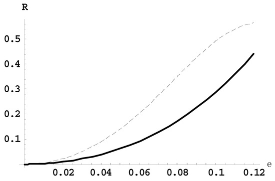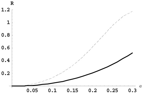 Figure 8 presents the dependence of the ratio R21(ε) of the intensity of the second satellite to the intensity of the first satellite (solid line) and the ratio R10(ε) of the intensity of the first satellite to the intensity of the main line (dashed line), for the Balmer-delta line for the observation parallel to the laser field.