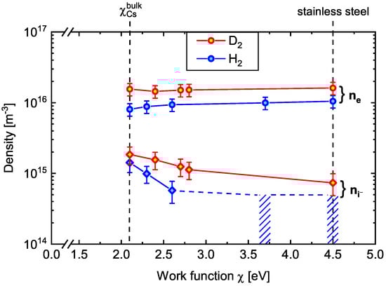 - Friedl, R.; Fantz, U. Influence of H2 and D2 plasmas on the work function of caesiated materials. J. Appl. Phys. 2017, 122, 083304. [Google Scholar] [CrossRef]