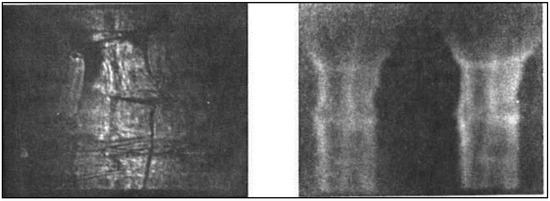 Images of the sources of the fast fusion-produced protons emitted from five successive shots in the PF-1000 experiment, as recorded with two ion pinhole cameras (and NTDs) oriented perpendicular and along the z-axis. The cameras were irradiated by 5 successive shots (at p0 = 3 torr D2 and U0 = 31 kV). Adapted from original data presented at the ICDMP Workshop 2008.