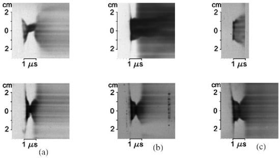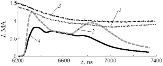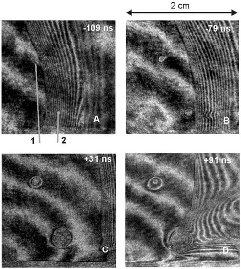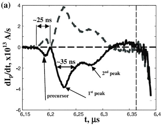 - Oginov, A.V.; Karakin, M.A.; Krauz, V.I.; Myalton, V.V.; Vinogradov, V.P.; Gurey, A.E.; Nikulin, V.Y.; Tikhomirov, A.A. Study of the Dynamics and Structure of Plasma-Current Sheath of Plasma Focus Discharge. BEAMS’04. In Proceedings of the 15th Int. Conf. on High-Power Particle Beams, Saint-Petersburg, Russia, 18–23 July 2005; pp. 746–749. [Google Scholar]