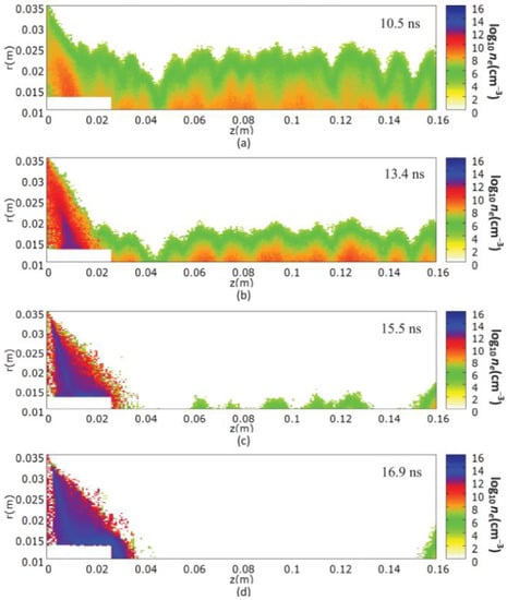 - Kubes, P.; Paduch, M.; Cikhardt, J.; Klir, D.; Kravarik, J.; Rezac, K.; Cikhardtova, B.; Kortanek, J.; Zielinska, E. The evolution of the plasmoidal structure in the pinched column in plasma focus discharge. Plasma Phys. Control Fusion 2016, 58, 045005. [Google Scholar] [CrossRef]