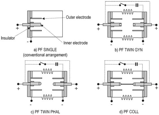 - Samuelli, M.; Rapezzi, L.; Angelone, M.; Pillon, M.; Rapisarda, M.; Vitulli, S. Unconventional plasma focus devices. IEEE Trans. Plasma Sci. 2006, 34, 36–54. [Google Scholar] [CrossRef]