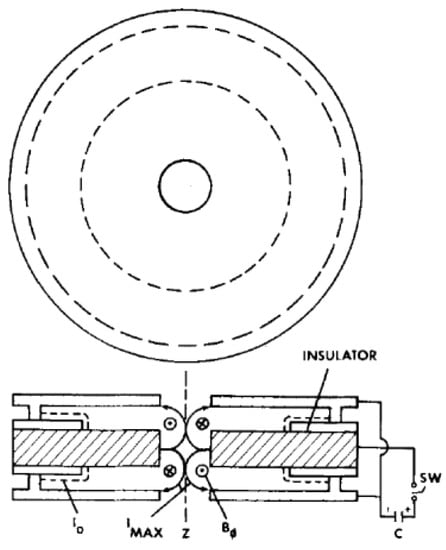 - Maisonnier, C.; Haegi, M.; Linhart, J.G. Hollow Dynamic Pinch Proc. of Conf. on Plasma Phys and Contr. Fus. Res., Culham, 6–10September 1965, V.II; IAEA: Vienna, Australia, 1966; pp. 345–365. Available online: http://www-naweb.iaea.org/napc/physics/FEC/STIPUB111_VOL2.pdf. (accessed on 15 July 2021).