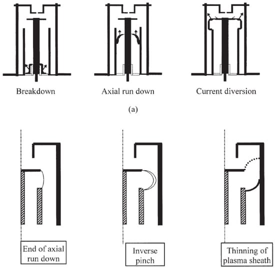 - Lu, M.F. Different modes of plasma sheath motion in the radial compression and pinch phases in plasma focus. J. Phys. D Appl. Phys. 1996, 29, 660–680. [Google Scholar] [CrossRef]